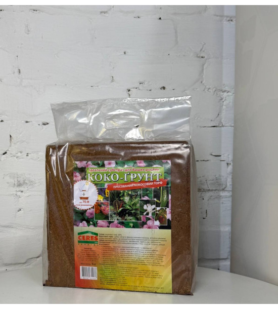 Пресований кокосовий торф в індивідуальній упаковці. До 70л після розширення. Потребує додаткового