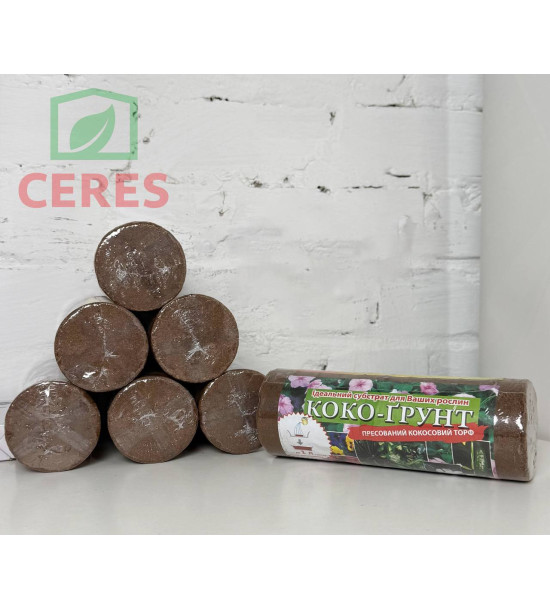 Пресований кокосовий торф в дисках по 65 г, коробка 24 упаковки по 10шт. Об'єм після розширення одного ди
